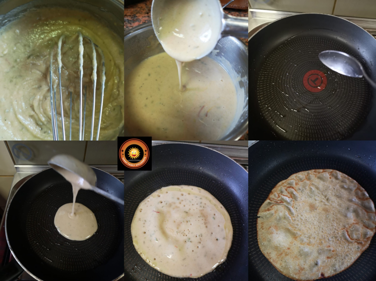 Adjust the consistency of the batter according to the desired thickness of the pooda.