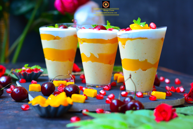 Mango cream is a perfect summer dessert. It’s a very delicious and sumptuous dessert ideal to beat the heat. It’s an easy, quick, eggless, no-cook, absolutely fuss-free dessert.